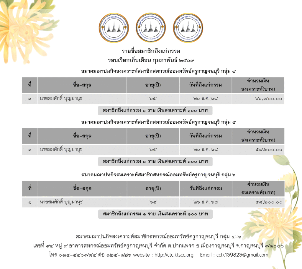 “รายชื่อสมาชิกถึงแก่กรรม รอบเรียกเก็บ ธันวาคม 2565”